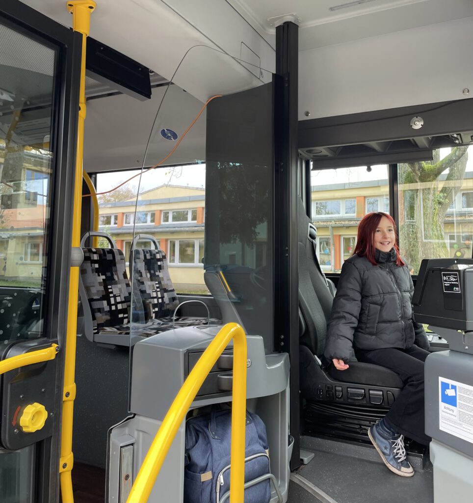 Dabei durften sie nacheinander auf dem Platz des Busfahrers Platz nehmen und beobachten, dass ganze Gruppen von Kindern neben dem Fahrzeug plötzlich „verschwinden“. So wurde deutlich, wie leicht Radfahrerinnen, Radfahrer und Fußgängerinnen, Fußgänger übersehen werden können.