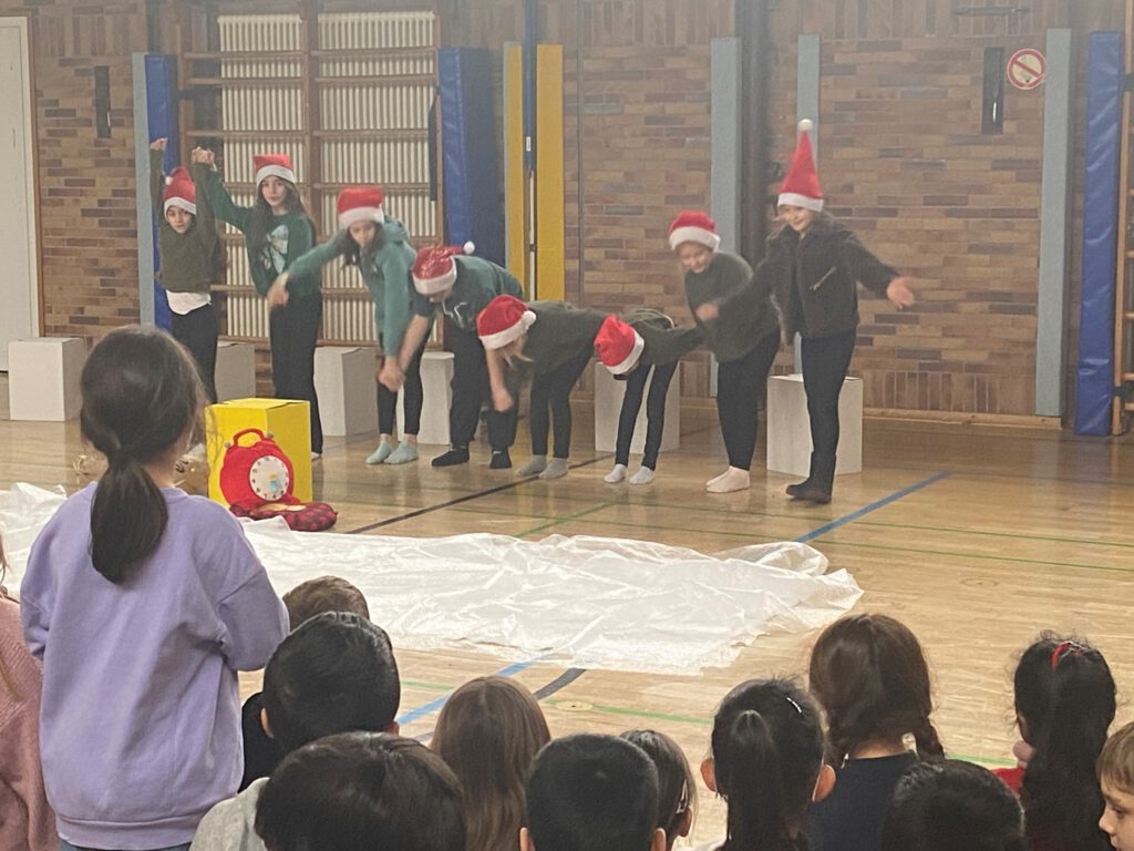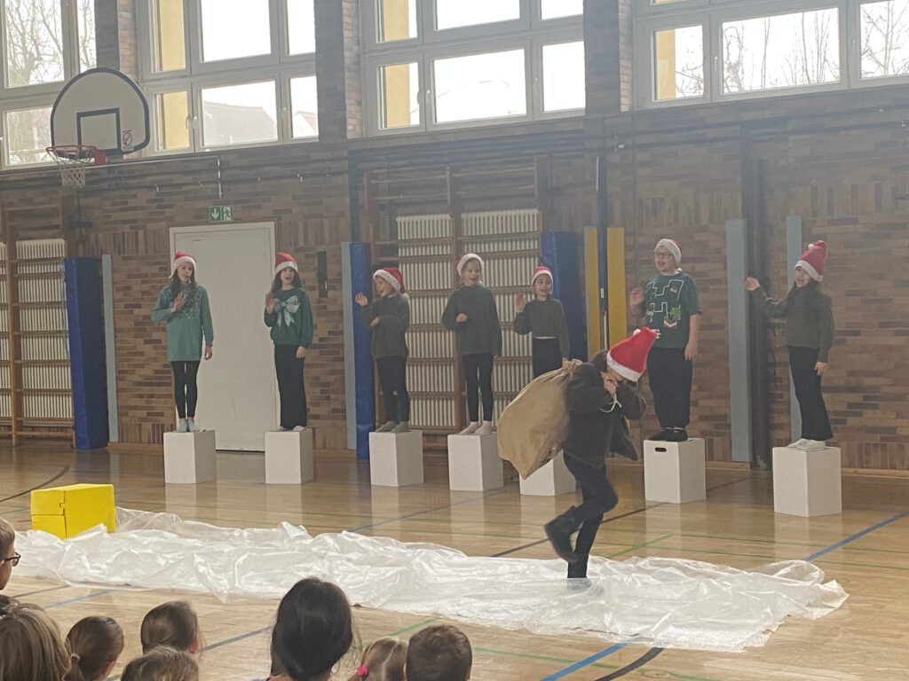 Am letzten Schultag begeisterten die Kinder der Schulspiel-AG ihre Mitschüler. In zwei zauberhaften Aufführungen bewiesen die Nachwuchsschauspieler, dass sie von ihrer Lehrerin Henriette Röhm schon sehr viel gelernt haben. Mit großer Spielfreude führten sie das Theaterstück „Der verschlafene Weihnachtsmann“ auf und erhielten im Anschluss den verdienten Applaus.
