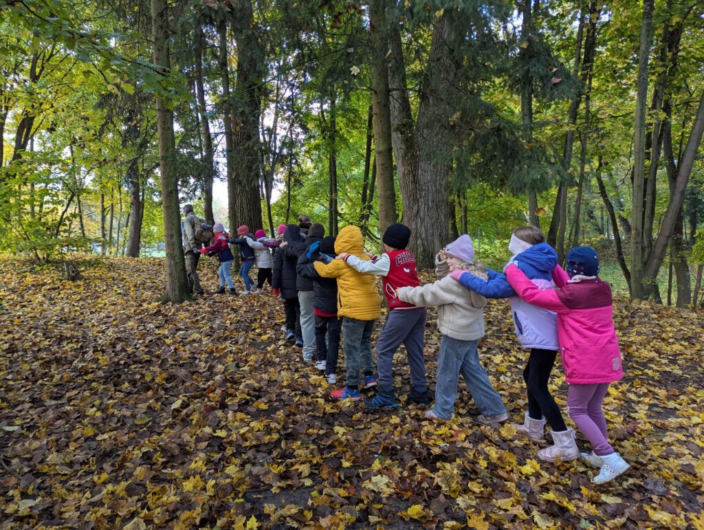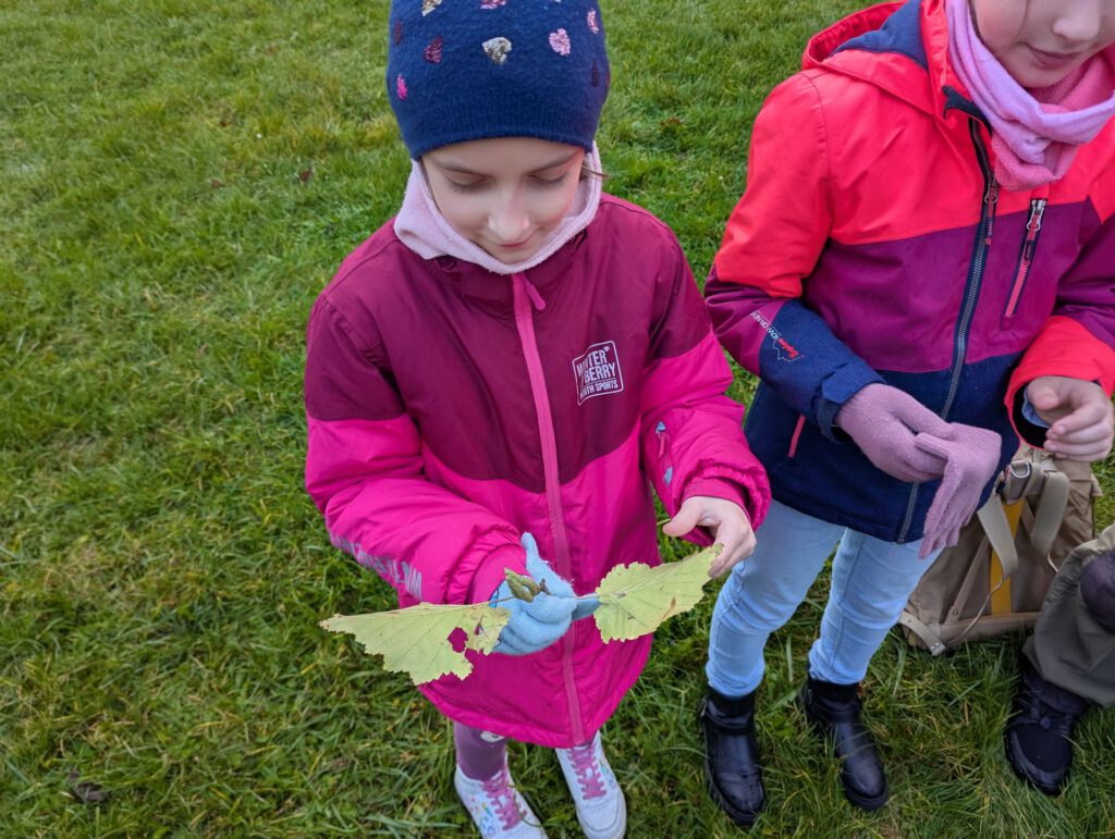Die Kinder konnten ihr im Unterricht erlerntes Wissen anwenden und vertiefen, indem sie verschiedene Baumarten bestimmten. Natürlich durften auch ein paar kleine Spiele nicht fehlen, die dabei halfen, die Natur mit allen Sinnen zu erleben.
