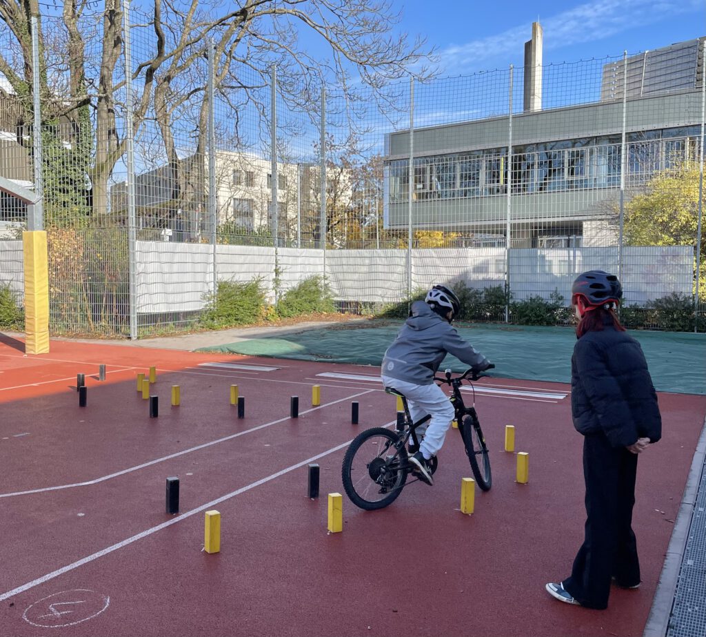 Bevor es losging, besprachen die Schülerinnen und Schüler gemeinsam mit dem ADAC-Team, wie man sich sicher im Straßenverkehr bewegt und worauf man beim Radfahren besonders achten sollte. Anschließend durften sie zeigen, was sie können: Auf dem Parcours ging es über das Spurbrett, durch den Slalom, über Hindernisse und beim Zielbremsen war volle Konzentration gefragt. Auch das einhändige Fahren und der sichere Spurwechsel wurden geübt.