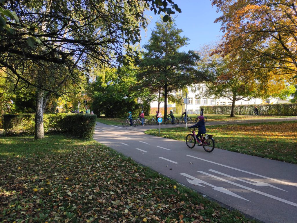 Gemeinsam fuhren wir zur Jugendverkehrsschule, um uns auf die bevorstehende Fahrradprüfung vorzubereiten. Auf den kleinen Übungsstraßen mit echten Verkehrsschildern, Ampeln und Zebrastreifen konnten die Kinder unter realistischen Bedingungen üben.