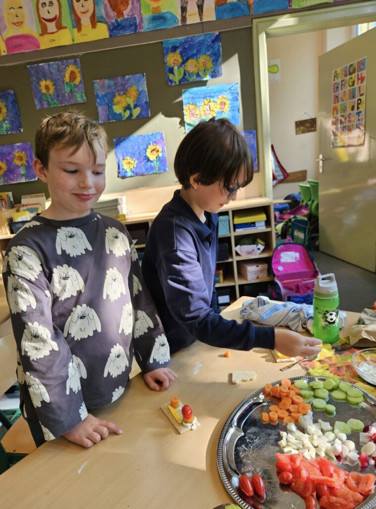 Am Donnerstag dann wurde im Klassenzimmer fleißig geschnippelt,
